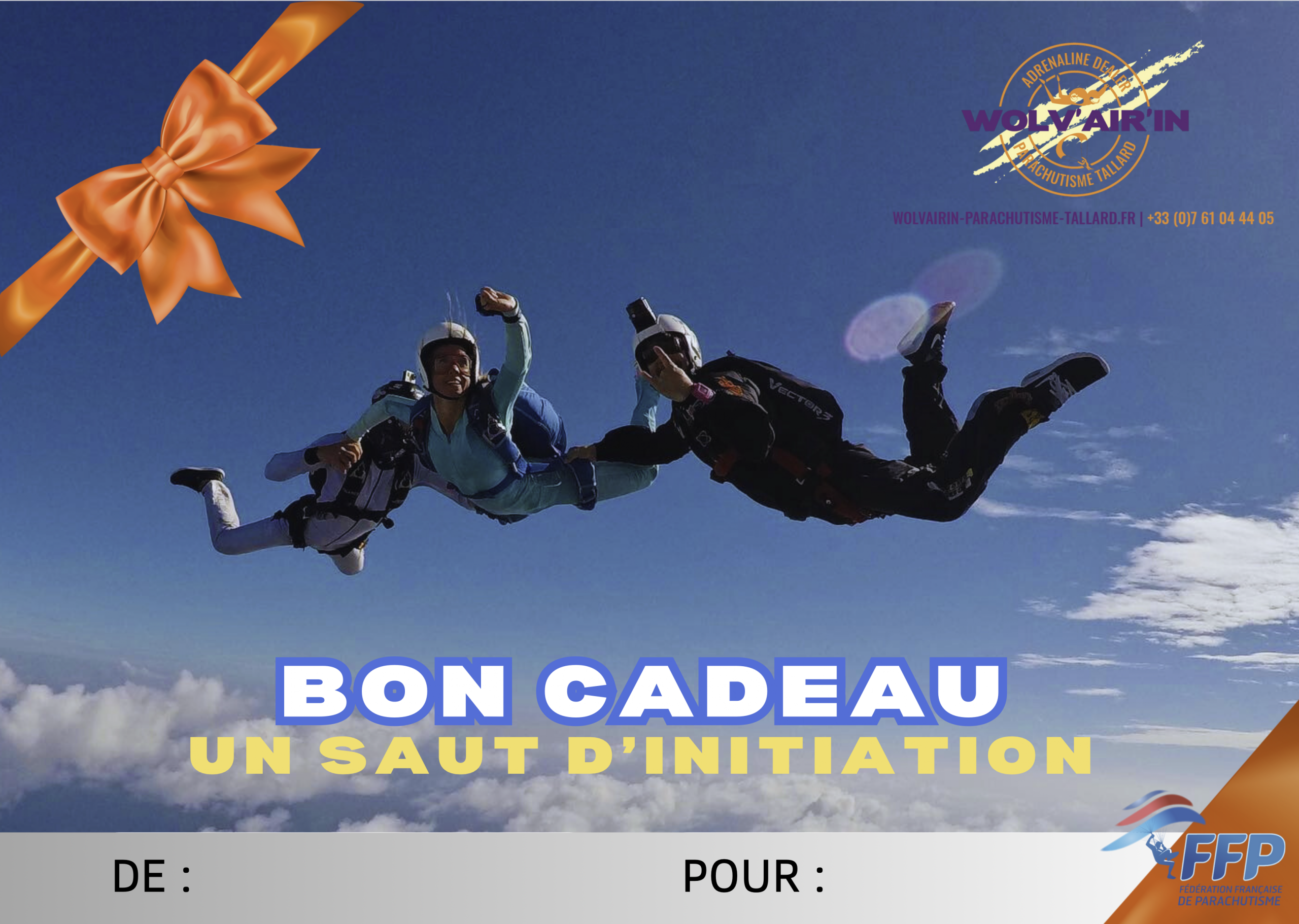 Offrir un saut en parachute, c’est également le moyen idéal de faire un cadeau original pour de multiples occasions (nos bons cadeaux sont personnalisables avec votre propre texte et quelques thèmes sont disponibles). Bon valable 1 an à partir de la date d’achat.
